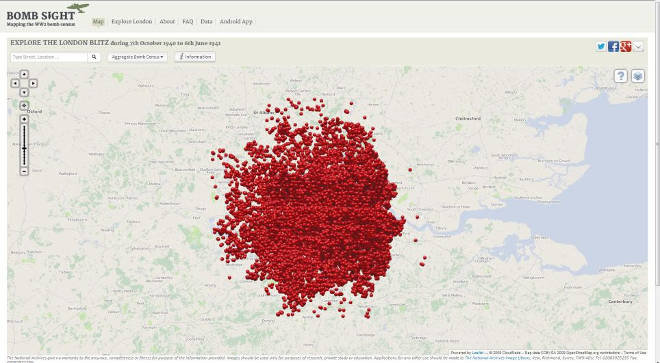 'Previously available only by viewing in the Reading Room at The National Archives, Bomb Sight is making the maps available to citizen researchers, academics and students wanting to explore where the bombs fell and to discover memories and photographs from the period.